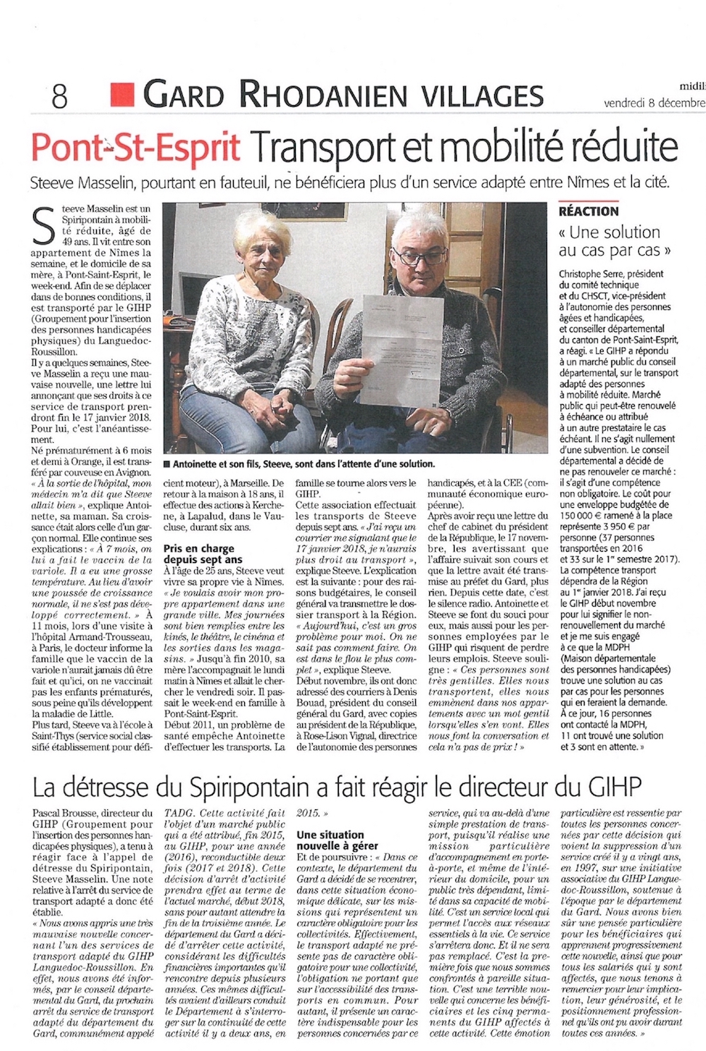 Cette émotion particulière est ressentie par toutes les personnes concernées par cette décision qui voient la suppression d’un service créé il y a 20 ans, en 1997, sur une initiative associative du GIHP Occitanie – LR soutenue à l’époque par le Département du Gard.