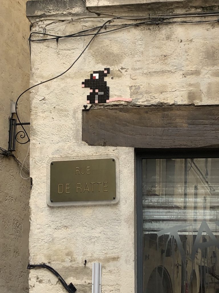 Les participants ont ainsi découvert, au cours de leur déambulation, des oeuvres de « street art ». En effet, il suffit parfois de lever les yeux pour pouvoir admirer les réalisations d’artistes tels que Stork . Cet artiste, dont le nom signifie cigogne en anglais, utilise ce symbole de l’Alsace dans beaucoup de ses réalisations.