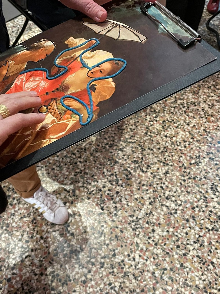 - l’une, le matin à partir de 10h, pour les adhérents en situation de handicap visuel, qui ont pu bénéficier d’une visite adaptée avec notamment la présentation détaillée et sensorielle autour de l’univers d’un tableau « Vertumne et Pommone » de Jean Ranc puis la découverte tactile de deux sculptures, une « Venue allongée » de François-Xavier Fabre et La tête de l’éloquence d’Emile Antoine Bourdelle,