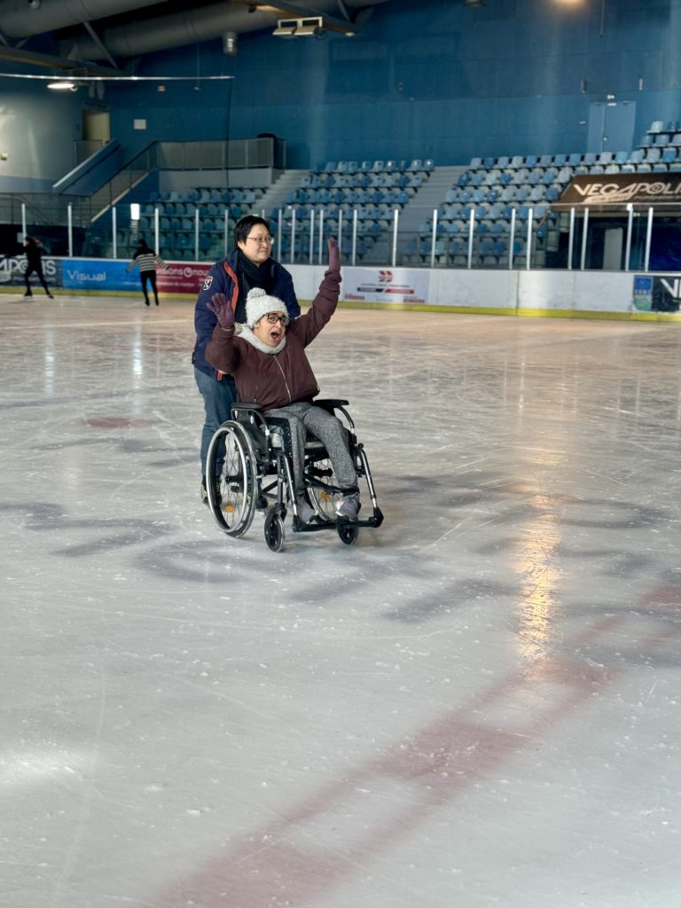Les bénéficiaires de l’accueil de jour sont récemment allés à la découverte de la patinoire de Montpellier accompagnés d’Alexane (anciennement stagiaire auprès de Handisport) qui leur a fait découvrir sa passion : le patinage.