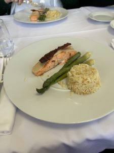 - velouté d’asperge accompagné d’une chantilly salée en plat (une surprise du chef),