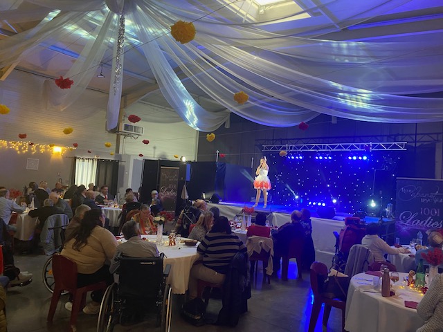 Les convives ont tout d’abord dégusté un déjeuner de fête, puis l’après-midi s’est agréablement poursuivie, pour le plus grand bonheur de tous, avec la représentation donnée par la revue « 1001 Ladies », composée d’une chanteuse, 3 danseuses et 1 responsable Régie Son et lumières.